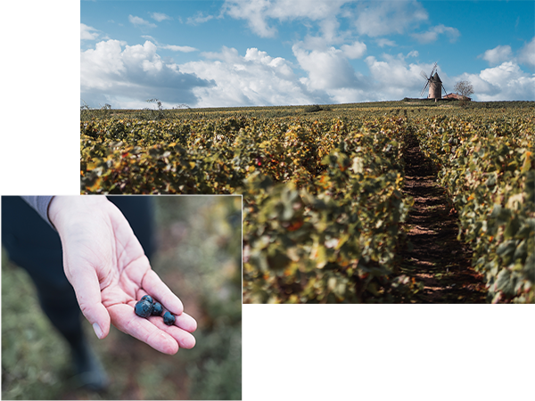 The estate covers 7 hectares of vineyards, planted exclusively with Gamay Noir à jus blanc, the emblematic grape variety of Beaujolais. All our parcels lie within the Moulin-à-Vent appellation, renowned for producing the most structured and elegant wines of the region.
